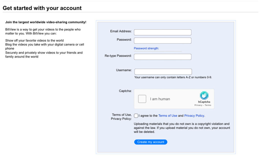 You have made it to the BitView homepage. On the top right corner, click Create Account