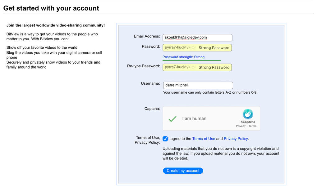 You have been redirected to the account creation page. Put in your credentials as shown.